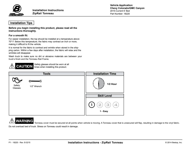 Bestop designed the ZipRail Soft Tonneau Cover for ease of installation and use, and to stand up to every climate or weather condition. It has the lowest height profile of any Bestop tonneau so it looks sleek and smooth. ZipRail Soft Tonneau features no-drill, bolt-on clamp system and bed rails with Bestop's original BeltRail channel attachment system. The tonneau seals into the bed rails for a full perimeter closure at the sides, front and back. Dual pull tabs at either rear corner make roll-up super easy. 100% access to the bed.